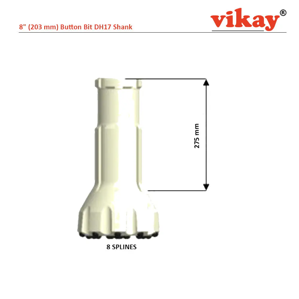 Vikay is a global supplier of new aftermarket replacement parts - 8" (203 mm) Button Bit DH17 Shank from India.