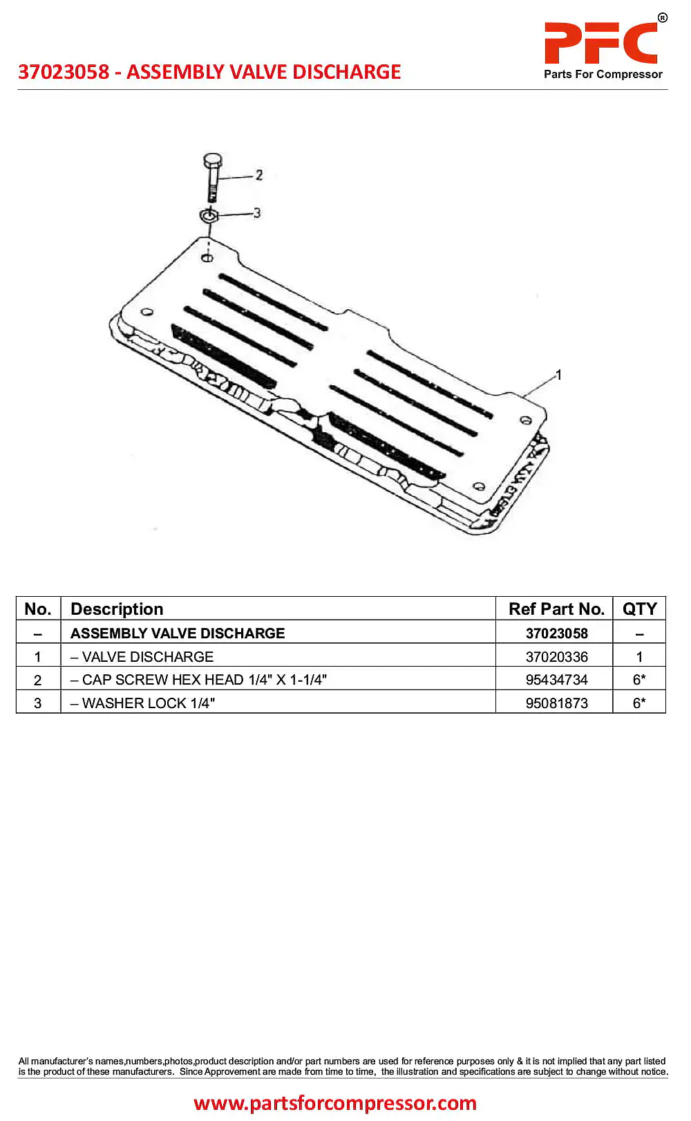 PFC - Parts for Compressor is a global supplier of OEM Quality New Aftermarket Replacement Air Compressor Spare Parts - Assembly Valve Discharge 37023058 - Model 7 x 5 ESV 1 NL for Ingersoll Rand Air Compressor - Type-Esv/Esh from India.