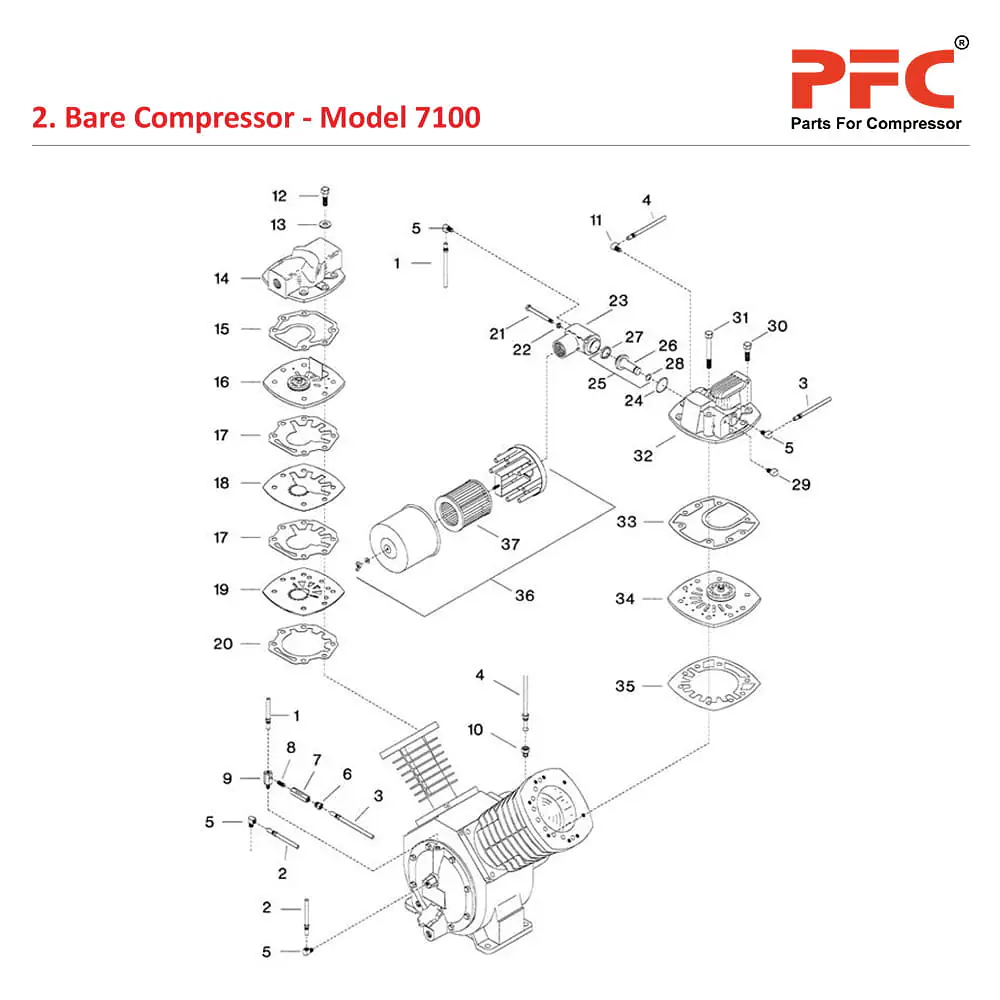 PFC - Parts for Compressor is a global supplier of OEM Quality New Aftermarket Replacement Air Compressor Spare Parts for - Bare Compressor For 7100 Ingersoll Rand Type 30 - Model 7100 from India.
