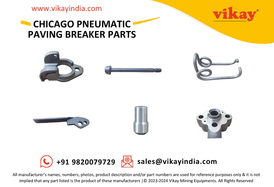 Vikay Mining Equipments is a global supplier of Chicago Pneumatic Paving Breaker Parts - Cp 117 Chicago Pneumatic Paving Breaker Parts, Cp 1210 Chicago Pneumatic Paving Breaker Parts, Cp 1230 Chicago Pneumatic Paving Breaker Parts, Cp 1240 Chicago Pneumatic Paving Breaker Parts from India.