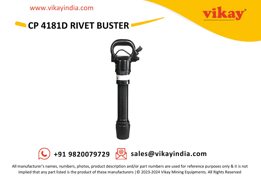 Vikay is a worldwide distributor of CP 4181D Chicago Pneumatic Rivet Buster - available in 8 Inch and 11 inch Cylinder suitable for cutting large rivets, concrete demolition, and heavy-duty chipping work in maintenance and construction from India.