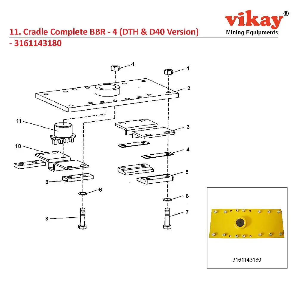 Vikay is a global supplier of new aftermarket replacement parts - Cradle Complete 3161143180 for Atlas Copco Wagon Drill Bvb-25 from India.