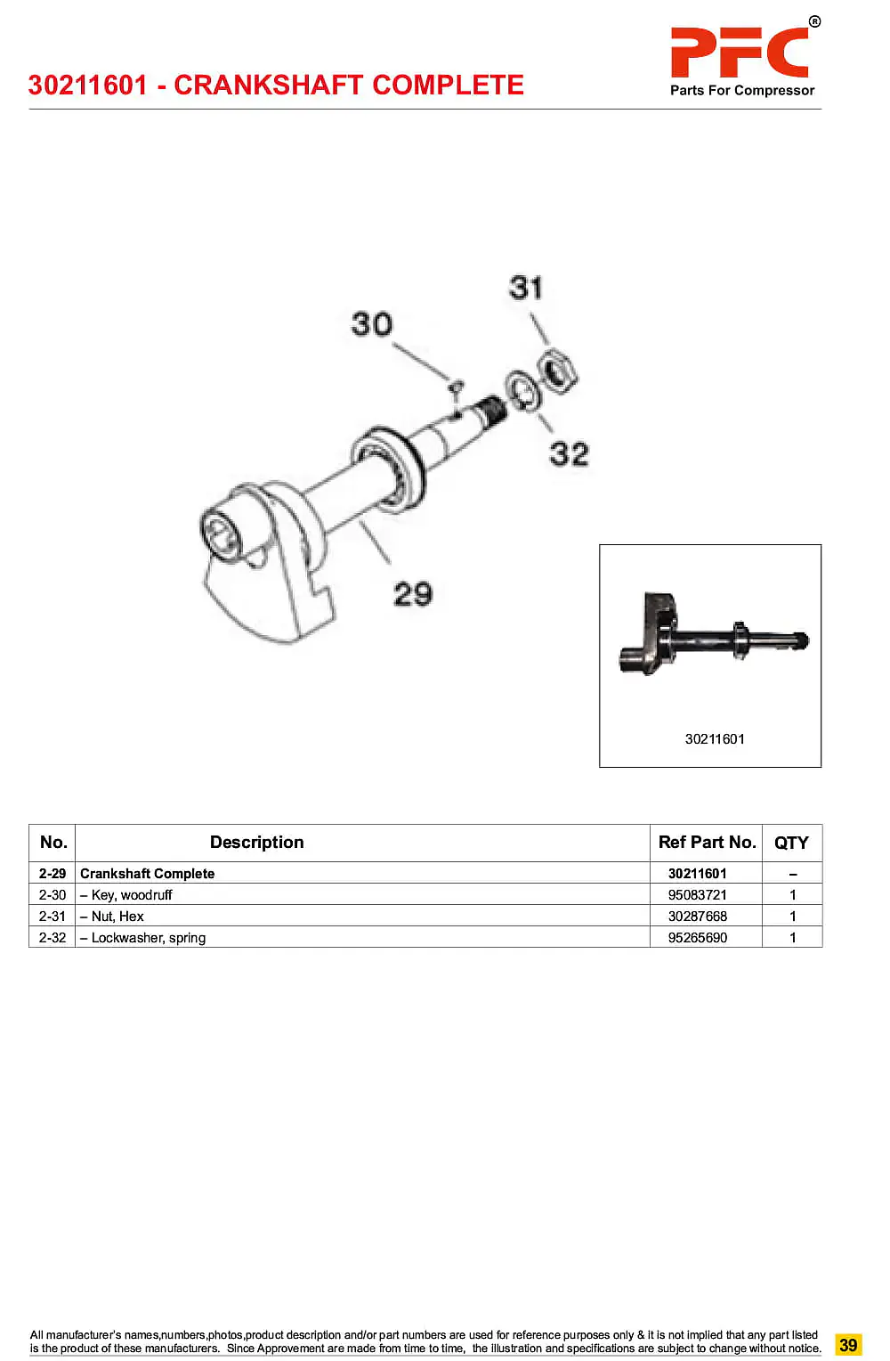 PFC - Parts for Compressor is a global supplier of OEM Quality New Aftermarket Replacement Air Compressor Spare Parts - Crankshaft Compl. 30211601 for Ingersoll Rand Air Compressor - Type-30 from India.