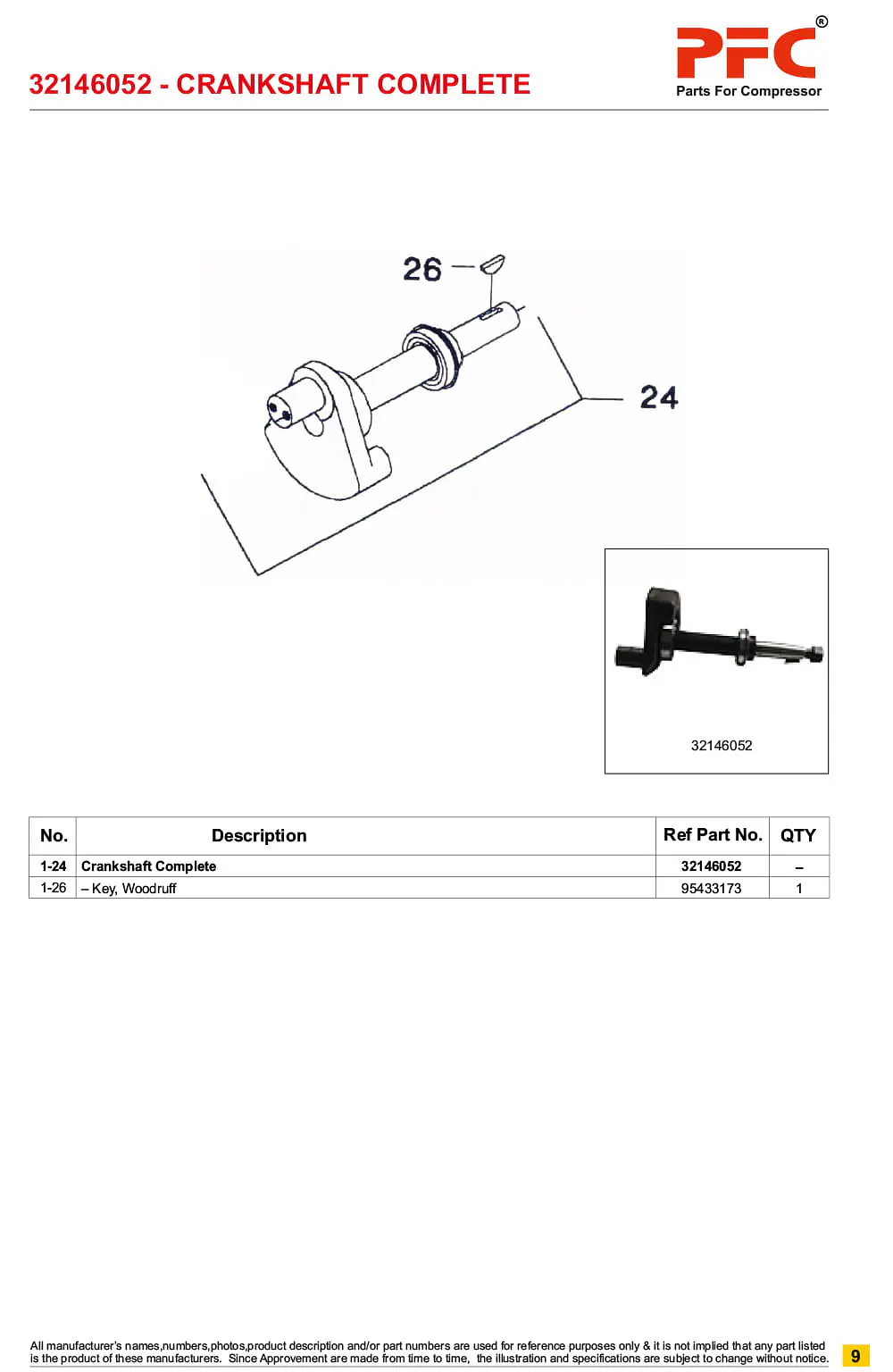 PFC - Parts for Compressor is a global supplier of OEM Quality New Aftermarket Replacement Air Compressor Spare Parts - Crankshaft Complete with Bushing 32146052* for Ingersoll Rand Air Compressor - Type-30 from India