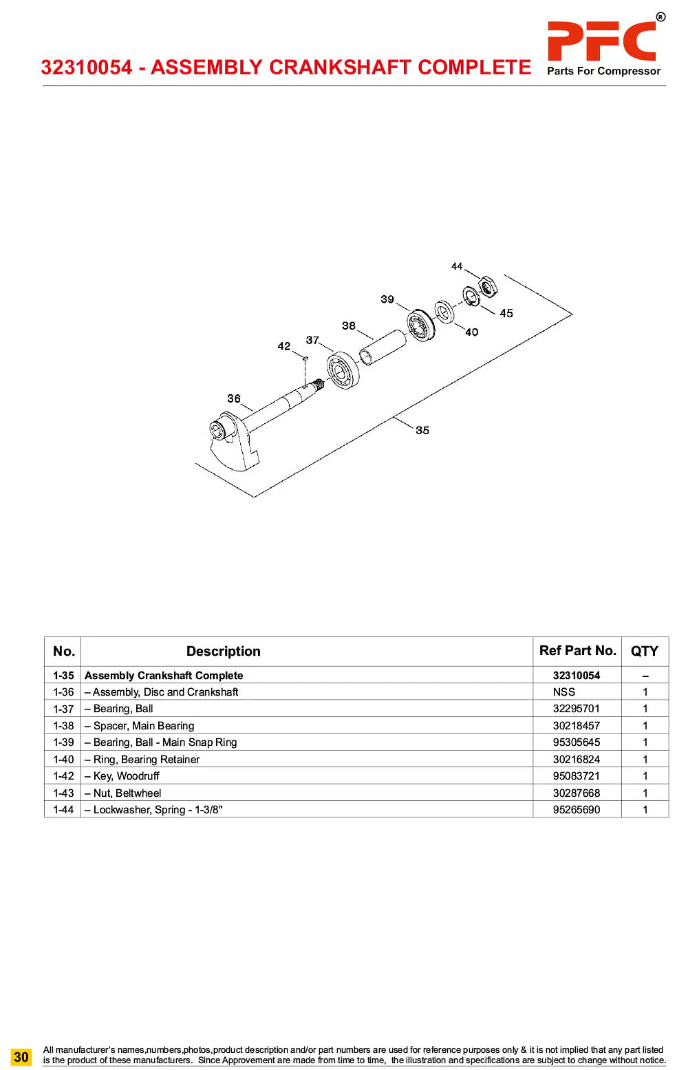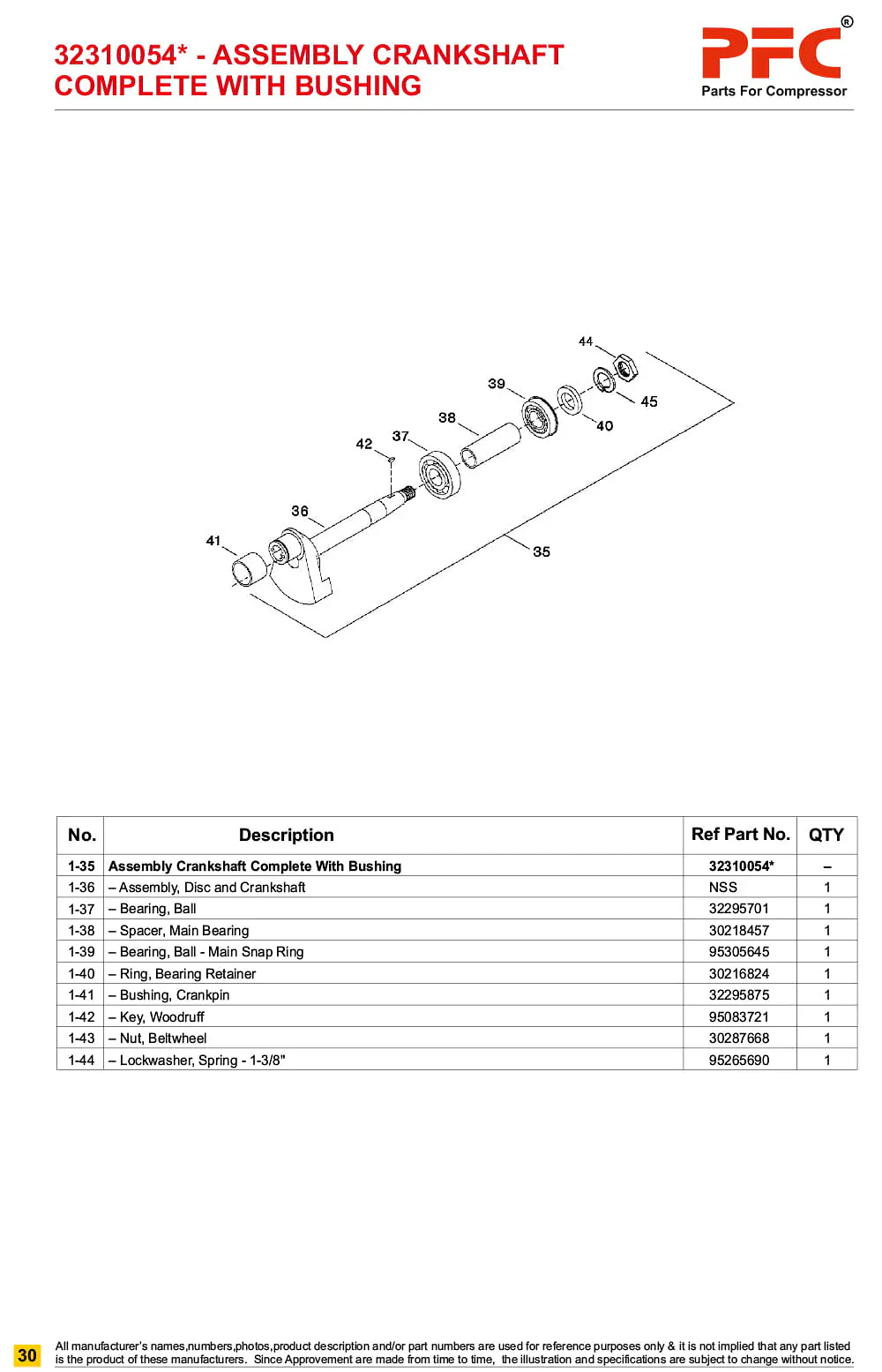 PFC - Parts for Compressor is a global supplier of OEM Quality New Aftermarket Replacement Air Compressor Spare Parts - Crankshaft Complete with Bushing 32310054* Model 3000 - Type 30 Replacement parts from India