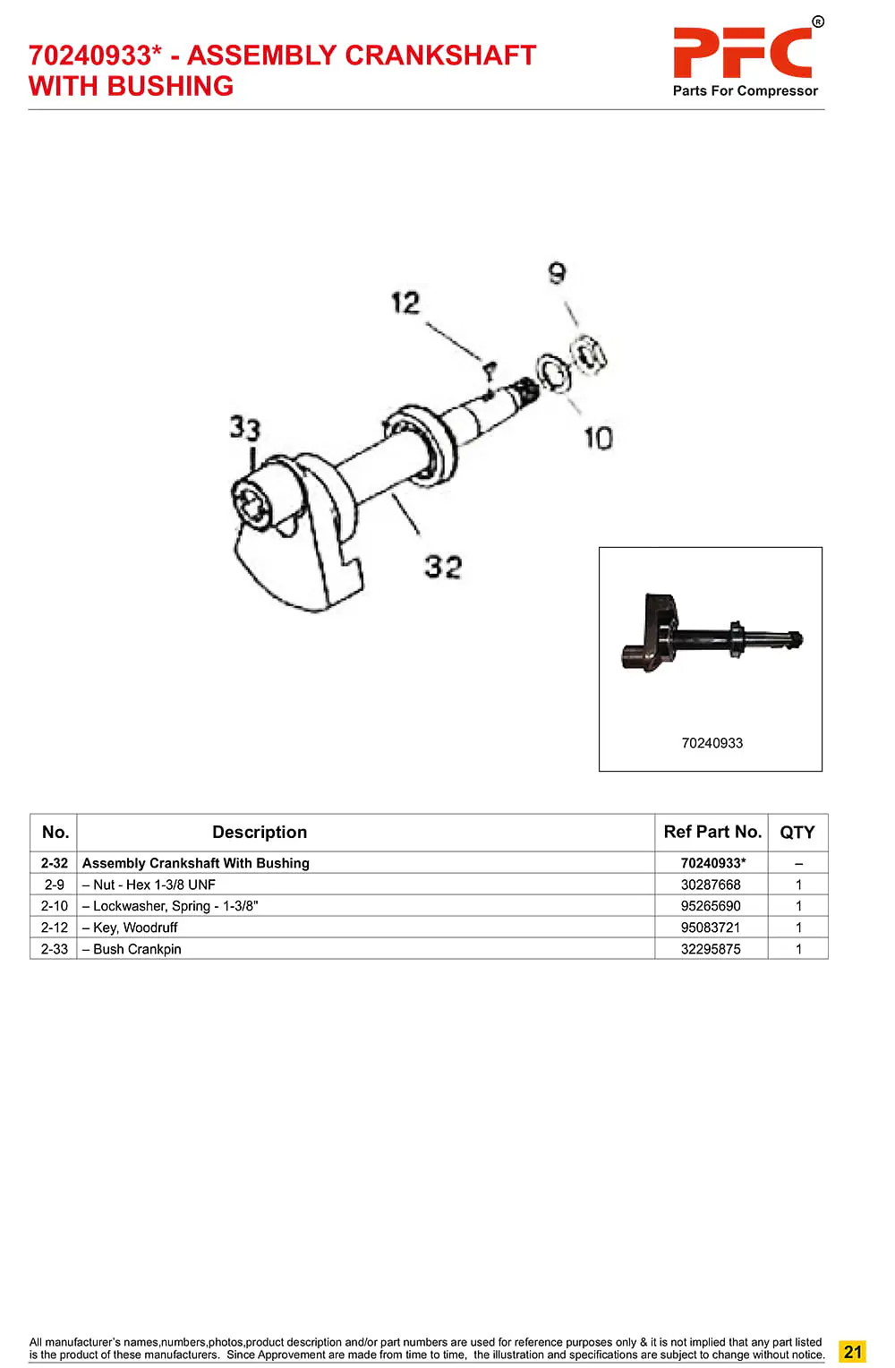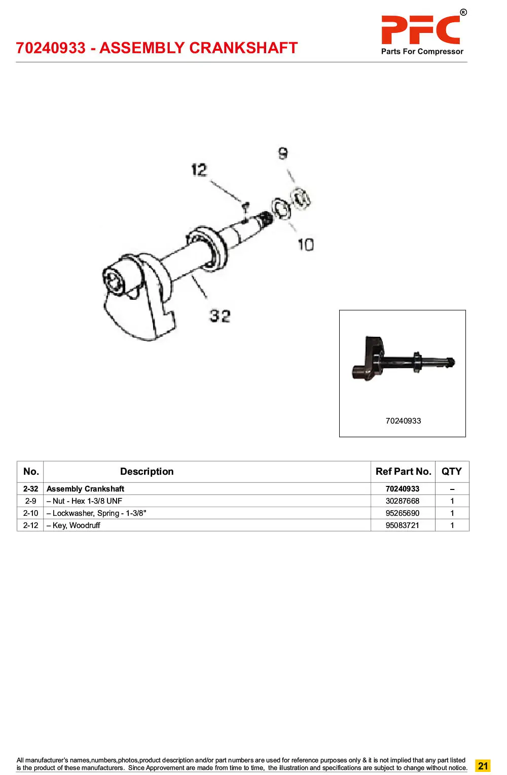 PFC - Parts for Compressor is a global supplier of OEM Quality New Aftermarket Replacement Air Compressor Spare Parts - Crankshaft Complete with Bushing 70240933* - Model 15T2 for Ingersoll Rand Air Compressor - Type-30 from India