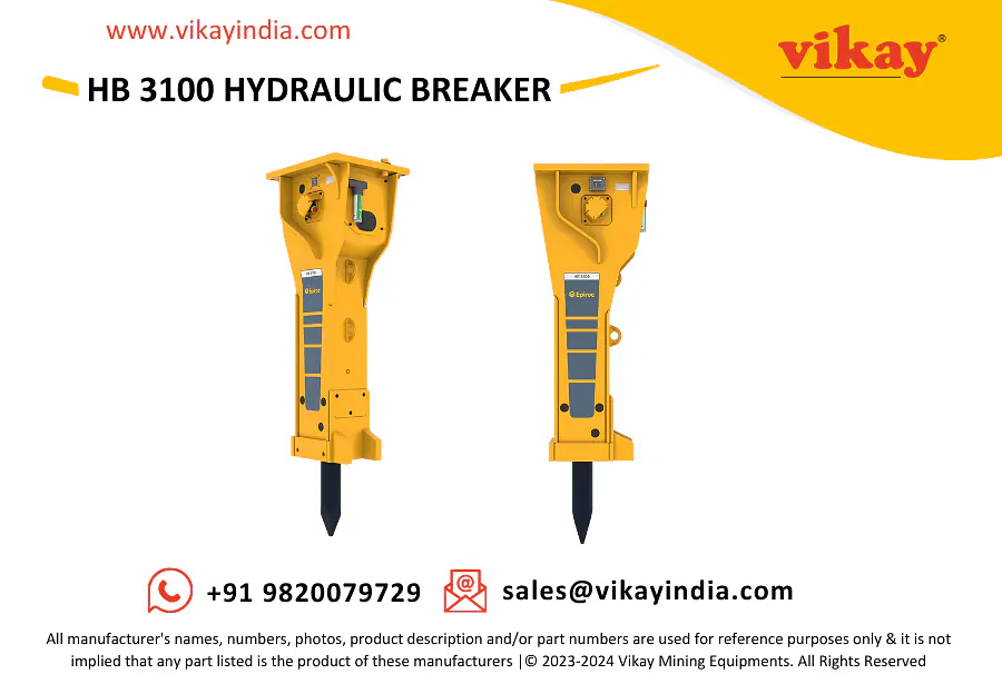 Vikay is a worldwide distributor of Epiroc HB 3100 Hydraulic Breaker - 3363105651 suitable for excavators of 32 - 52 tons (70500-115000 lb), used in demolition, mining, quarrying, trenching, rock excavation, etc. from India.