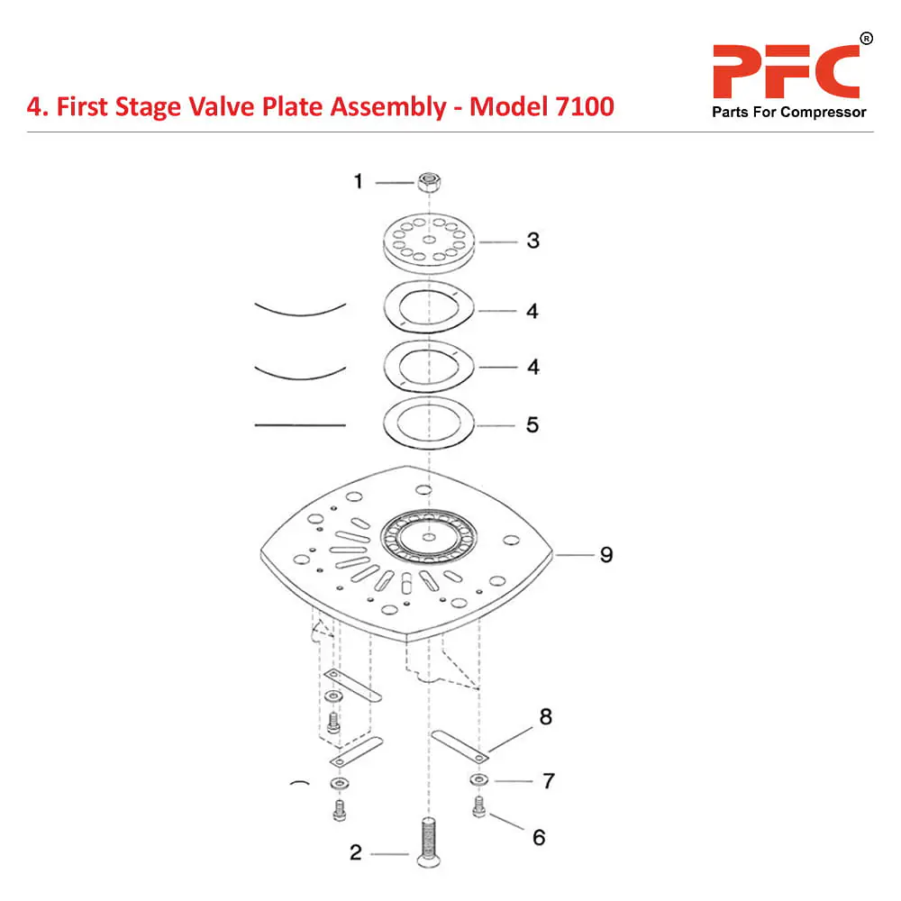 PFC - Parts for Compressor is a global supplier of OEM Quality New Aftermarket Replacement Air Compressor Spare Parts for - First Stage Valve Plate Assembly from India.