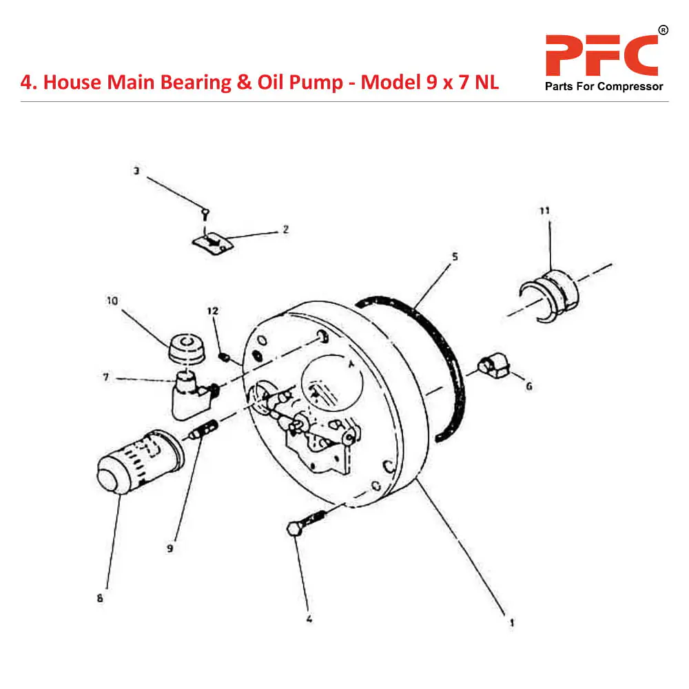 PFC - Parts for Compressor is a global supplier of OEM Quality New Aftermarket Replacement Air Compressor Spare Parts for House Main Bearing & Oil Pump For Ingersoll Rand - Model 9 x 7 NL from India