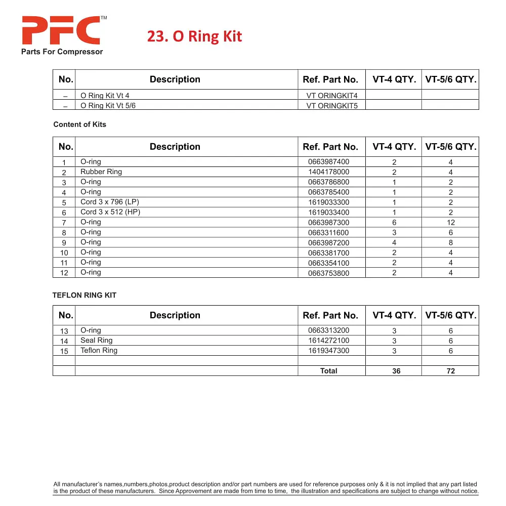 PFC - Parts for Compressor is a global supplier of OEM Quality New Aftermarket Replacement Air Compressor Spare Parts -O Ring Kit VT-5/6 for Atlas Copco Air Compressor from India.