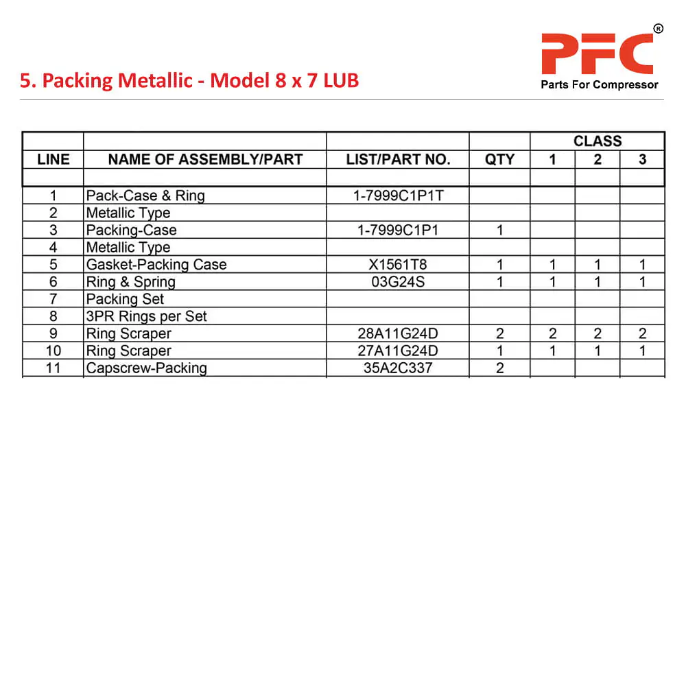 PFC - Parts for Compressor is a global supplier of OEM Quality New Aftermarket Replacement Air Compressor Spare Parts for Packing Metallic For Ingersoll Rand - Model 8 x 7 LUB from India.