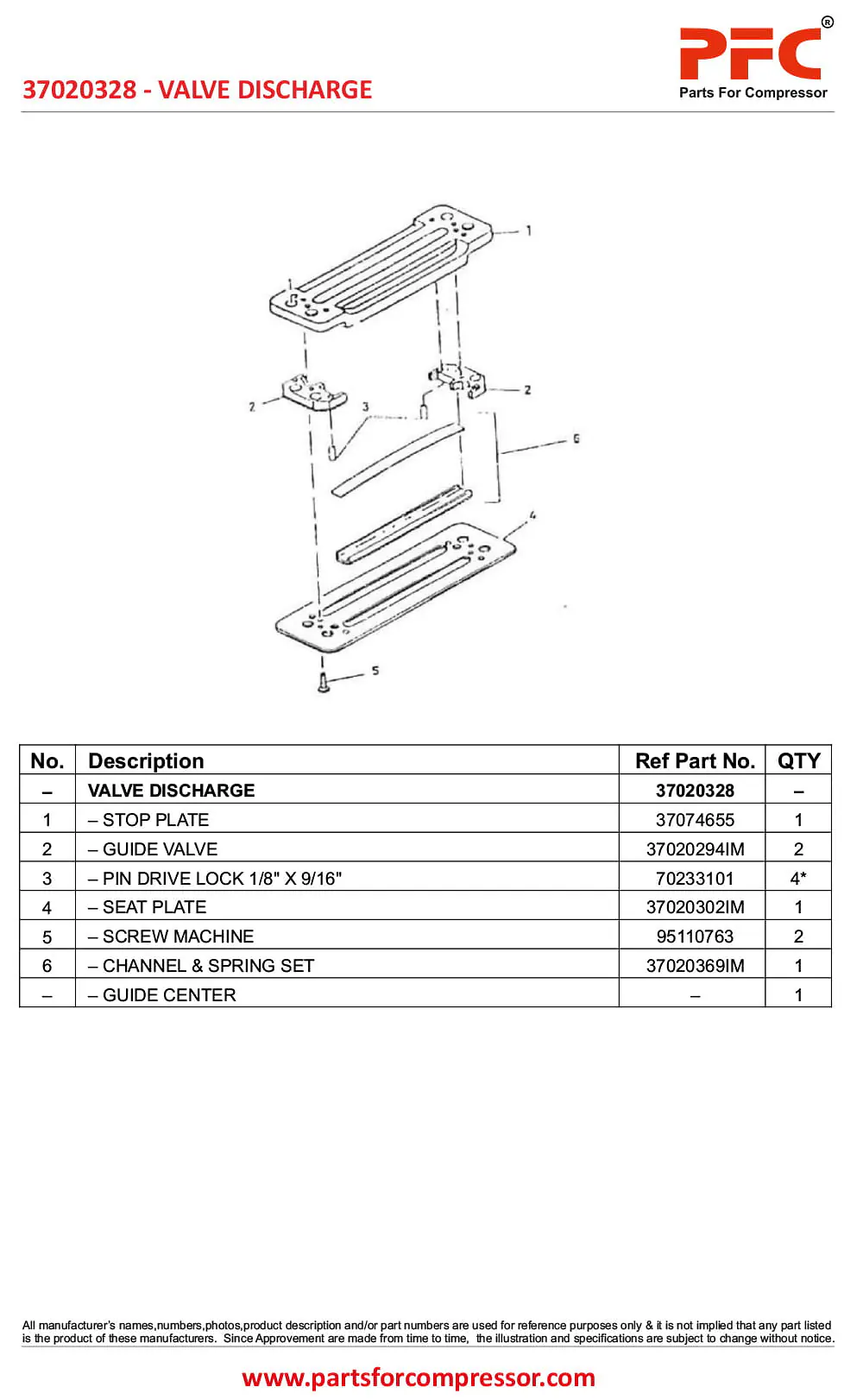 PFC - Parts for Compressor is a global supplier of OEM Quality New Aftermarket Replacement Air Compressor Spare Parts - Valve Discharge 37020328 - Model 7 x 5 ESV 1 LUB for Ingersoll Rand Air Compressor - Type-Esv/Esh from India.