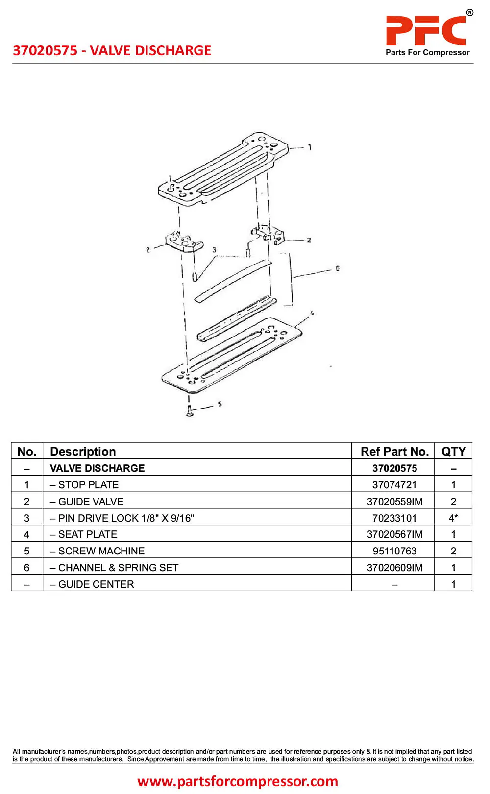 PFC - Parts for Compressor is a global supplier of OEM Quality New Aftermarket Replacement Air Compressor Spare Parts - Valve Discharge 37020575 - Model 8 x 5 ESV 1 LUB for Ingersoll Rand Air Compressor - Type-Esv/Esh from India.