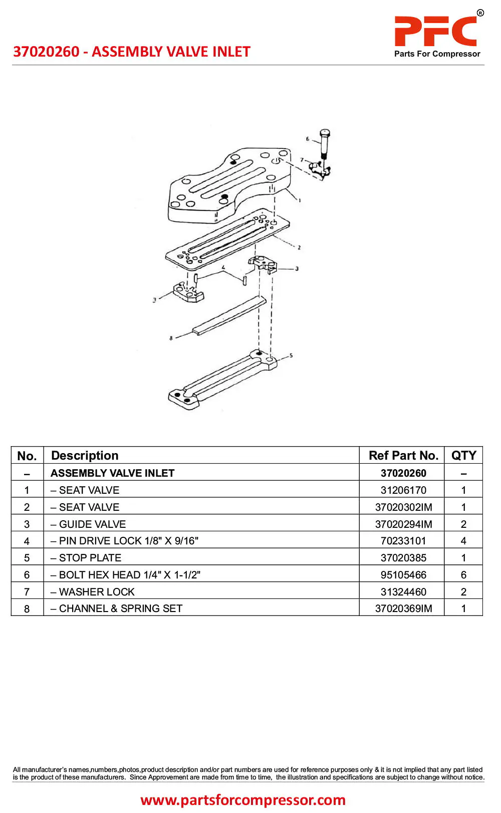 PFC - Parts for Compressor is a global supplier of OEM Quality New Aftermarket Replacement Air Compressor Spare Parts - Valve Inlet 37020260 - Model 7 x 5 ESV 1 LUB for Ingersoll Rand Air Compressor - Type-Esv/Esh from India.