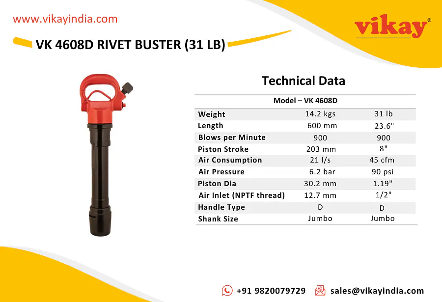 Vikay is a worldwide distributor of VK 4608D Rivet Buster - CP 4608D - technically equivalent to CP 4608D Riveters suitable for removing rivets in metal and concrete applications, including demolition and bridge work from India.