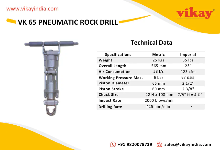Vikay Mining Equipments is a global supplier of new aftermarket replacement Parts for Vikay Rock Drill Model VK-65 from India