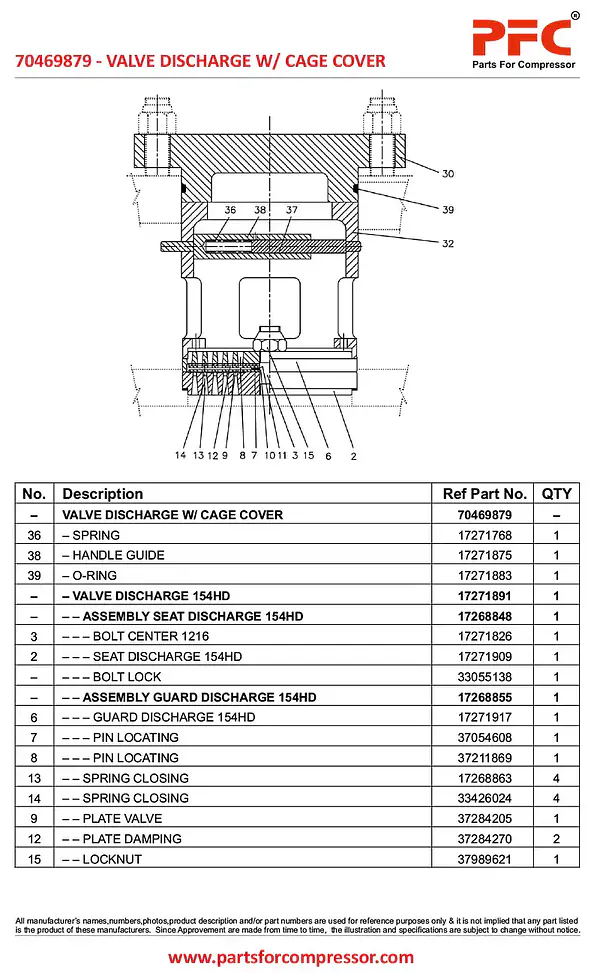 Valve Discharge W-Cage Cover 70469879 Replacement