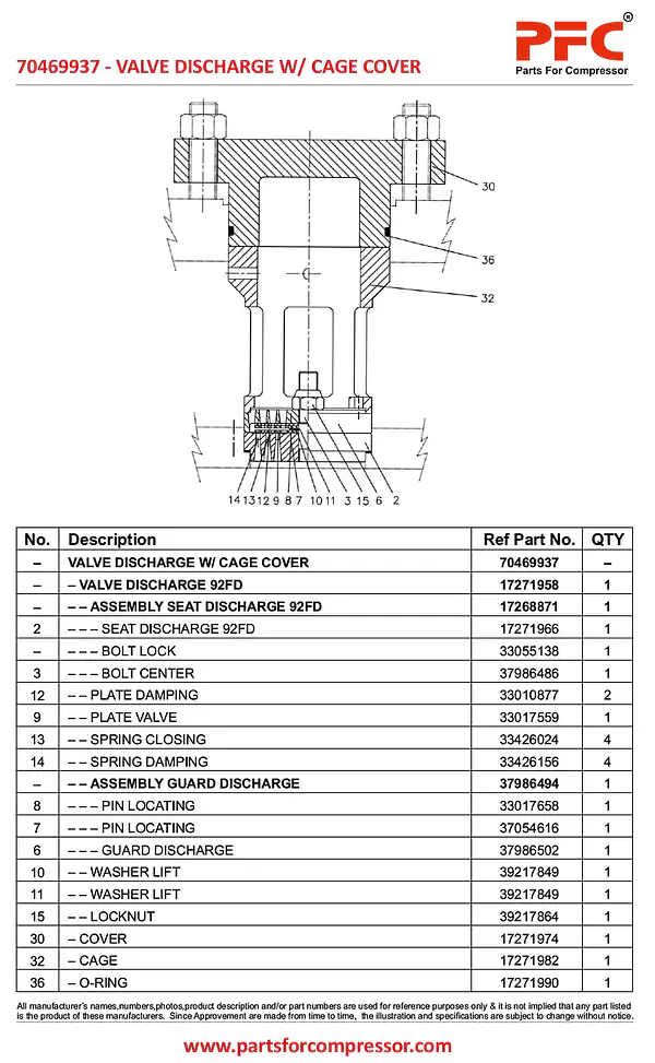 Valve Discharge W-Cage Cover 70469937 Replacement