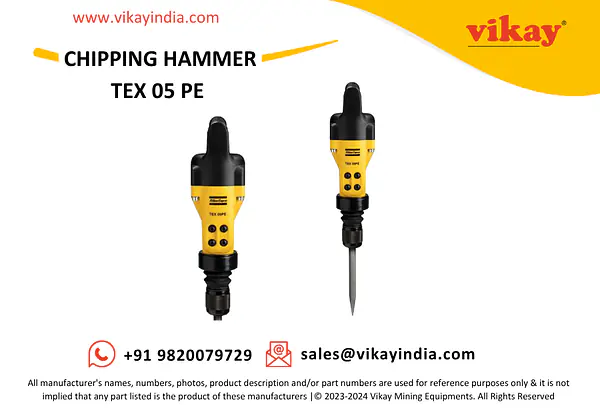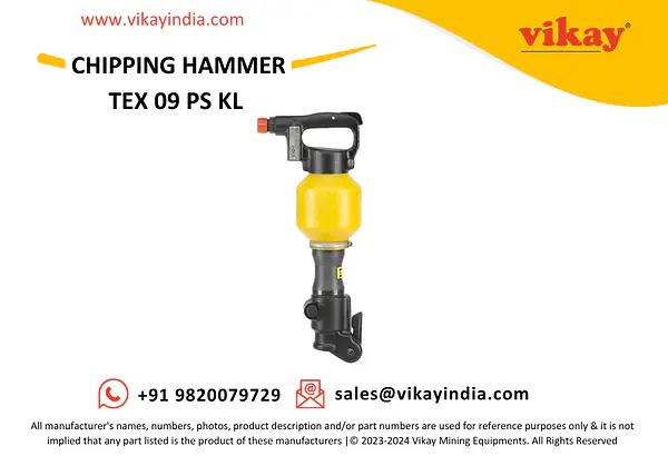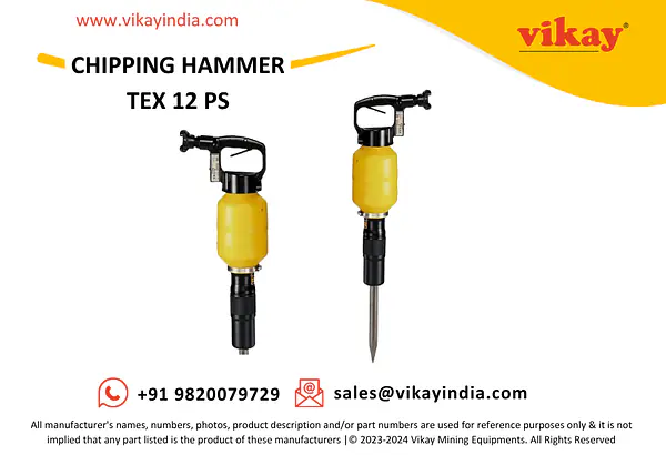 Vikay Mining Equipments is a worldwide distributor of Chipping Hammers – TEX 03 PS Atlas Copco Chipping Hammer, TEX 05 PE Atlas Copco Chipping Hammer, TEX 07 PE Atlas Copco Chipping Hammer, TEX 09 PE Atlas Copco Pneumatic Pick Hammer, TEX 09 PS KL Atlas Copco Pneumatic Pick Hammer, TEX 10 PS Atlas Copco Pneumatic Pick Hammer, TEX 10 PS KL Atlas Copco Pneumatic Pick Hammer, TEX 12 PE Atlas Copco Pneumatic Pick Hammer, TEX 12 PS Atlas Copco Pneumatic Pick Hammer, TEX 12 PS KL Atlas Copco Pneumatic Pick Hammer, CP 0012 Chicago Pneumatic Chipping Hammer, CP 4123 2H Chicago Pneumatic Chipping Hammers, CP 4123 2R Chicago Pneumatic Chipping Hammers, CP 4123 3H Chicago Pneumatic Chipping Hammers, CP 4123 4H Chicago Pneumatic Chipping Hammers, CP 4125 3H Chicago Pneumatic Chipping Hammers, CP 4125 4H Chicago Pneumatic Chipping Hammers, CP 4131 3H Chicago Pneumatic Chipping Hammers from India.