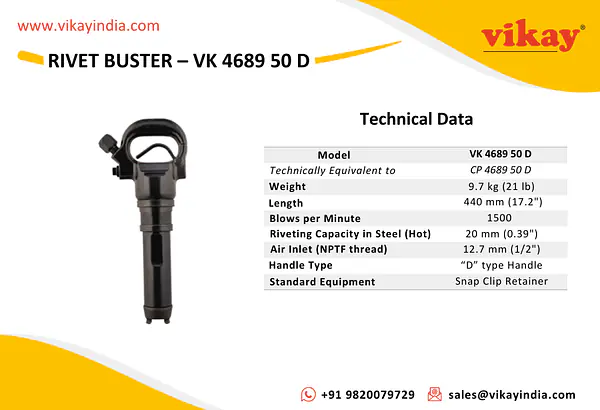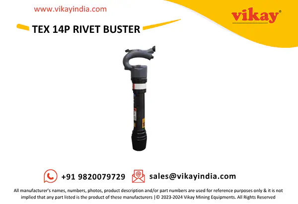 Vikay Mining Equipments is a worldwide distributor of Rivet Buster – TEX 14D Atlas Copco Rivet Buster, TEX 14P Atlas Copco Rivet Buster, TEX 15D Atlas Copco Rivet Buster, TEX 15P Atlas Copco Rivet Buster, CP 4181D Chicago Pneumatic Rivet Buster, CP 4181P Chicago Pneumatic Rivet Buster, CP 4608D Chicago Pneumatic Rivet Buster, CP 4608P Chicago Pneumatic Rivet Buster, CP 4611D Chicago Pneumatic Rivet Buster, CP 4611P Chicago Pneumatic Rivet Buster from India.