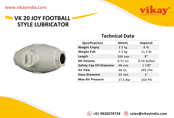 Vikay Mining Equipments is a worldwide distributor of Air Line Lubricators - Atlas Copco BLG 30, Atlas Copco CLG 30, 0.71 Ltr Oil Lubricator VK 20, 1.3 Ltr Oil Lubricator VK 30, 5 Ltr Oil Lubricator VK 40 from India.